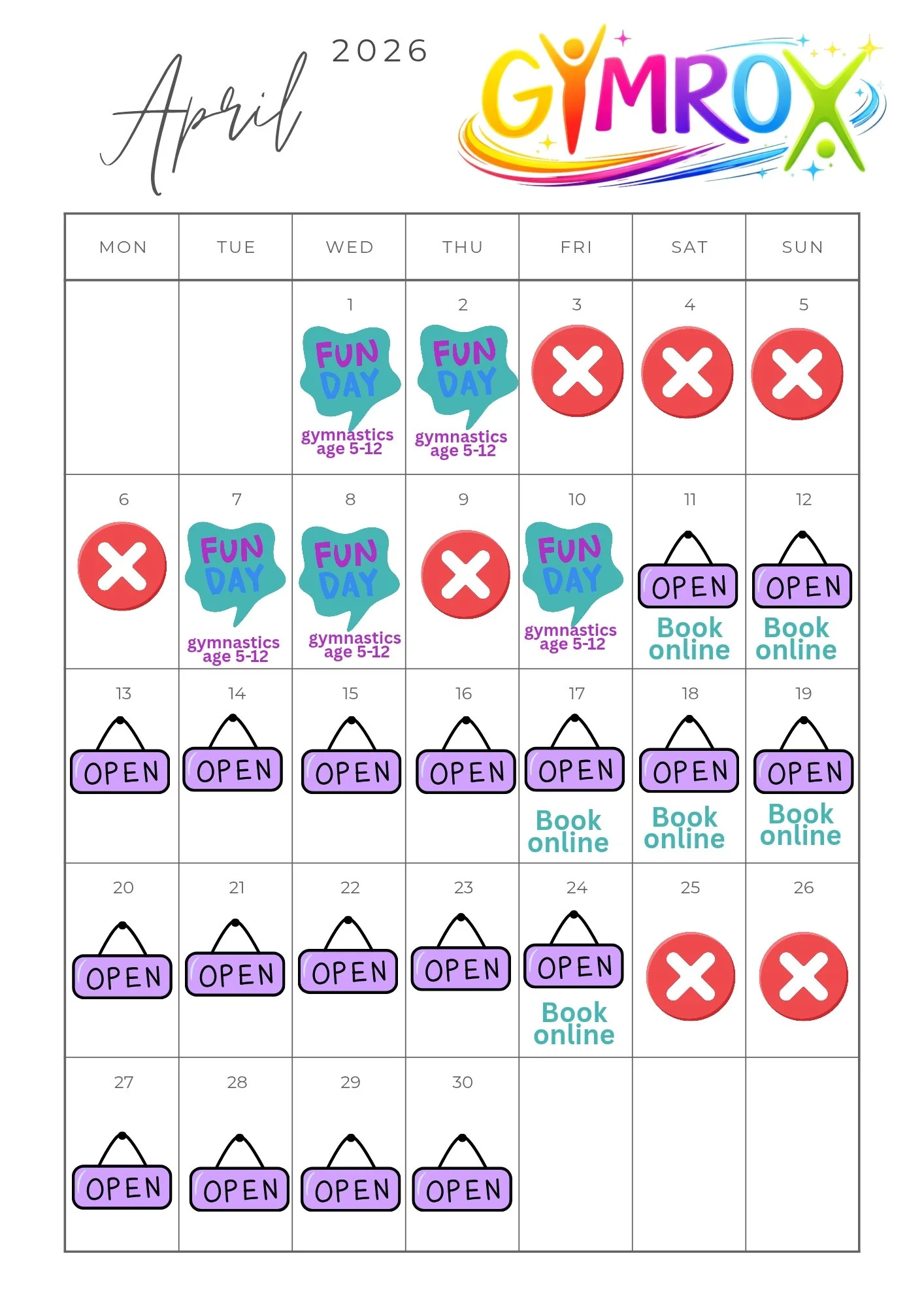 Gym Rox Tots is Closed for Easter holidays and is back open on 13th April !